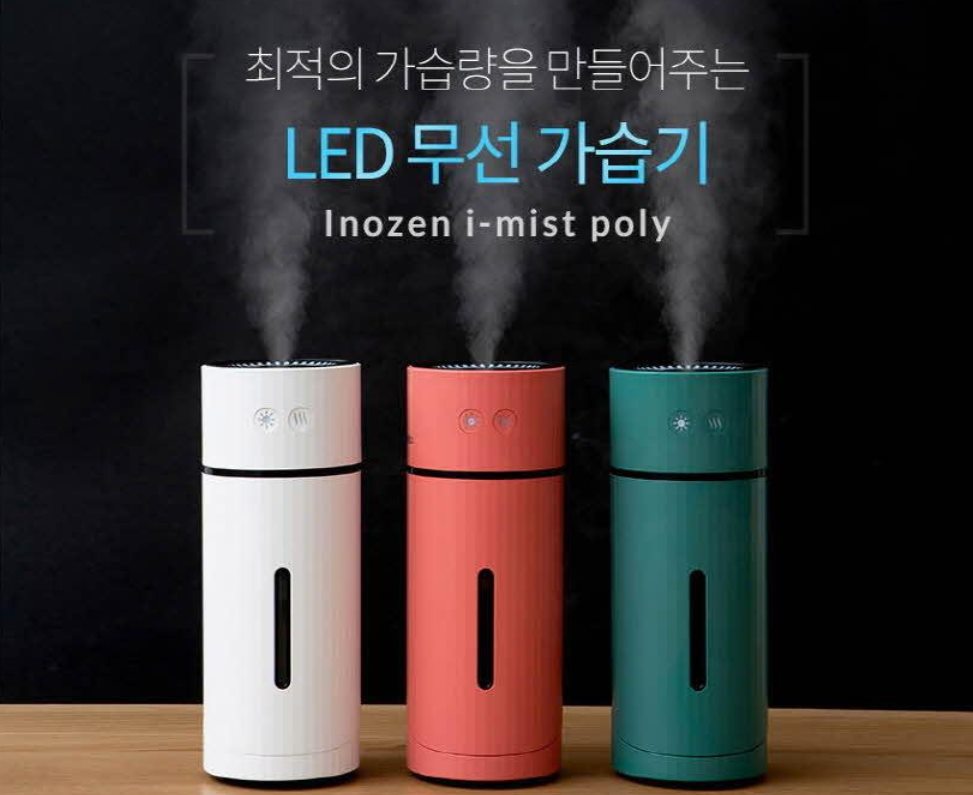 이노젠 i-mist poly 무선가습기의 장점은 활용이 편리한 무선가습기, 시간당 50ml 풍부한 가습력, 260ml 부족함 없는 물용량,